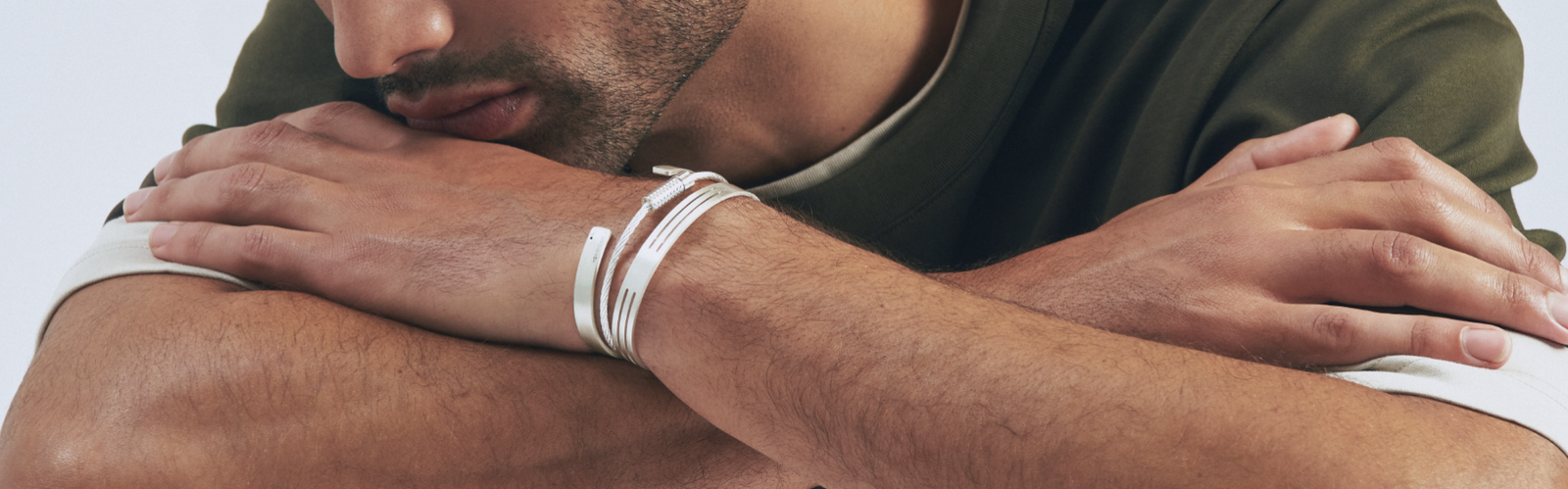 fabriquées dans nos ateliers en france, nos créations sont disponibles en argent 925, en or blanc, jaune ou rouge 18 carats, en titane dlc noir ou encore en cuir. elles s'inscrivent dans le temps avec la même constance que les formes qui les ont inspirées.